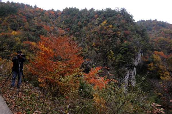 摄影爱好者拍摄红叶美景