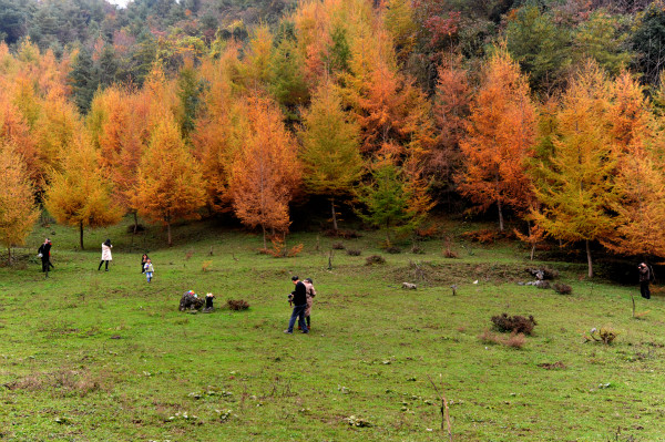 最眷恋红叶美景的,非摄影爱好者莫属。在广袤缤纷的红叶中,散布着他们的足迹。“今年来曾家山已是第五次了,这里不愧为全国十佳红叶观赏地,我想做又能做的,就是用镜头记录曾家山。”在老林村落叶松山林里,摄影爱好者吴雪松被美轮美奂的红叶迷住,越拍兴致越浓。