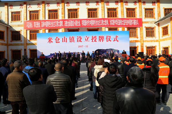 “撤销鼓城乡建制,建立米仓山镇,这是我县大力推进乡村振兴战略的重大成果。”该县县委书记刘亚洲在讲话中指出,原鼓城乡历史悠久、文化厚重、资源富集、区域优越,既是古时川北陕南物资、经济、文化、信息流通的咽喉,也是米仓山地文化发源地之一,境内拥有米仓山国家级自然保护区、米仓山大峡谷国家级自然风景名胜区、鼓城山—七里峡AAAA级景区等得天独厚的生态旅游资源。